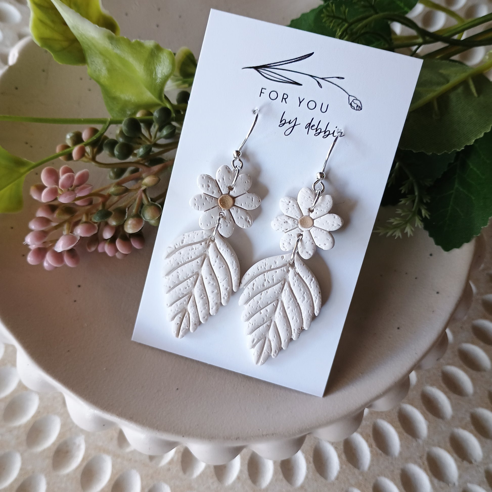 handcrafted using polymer clay, matte finish with texture leaf. 6.5cm long. Wear spring 🌼