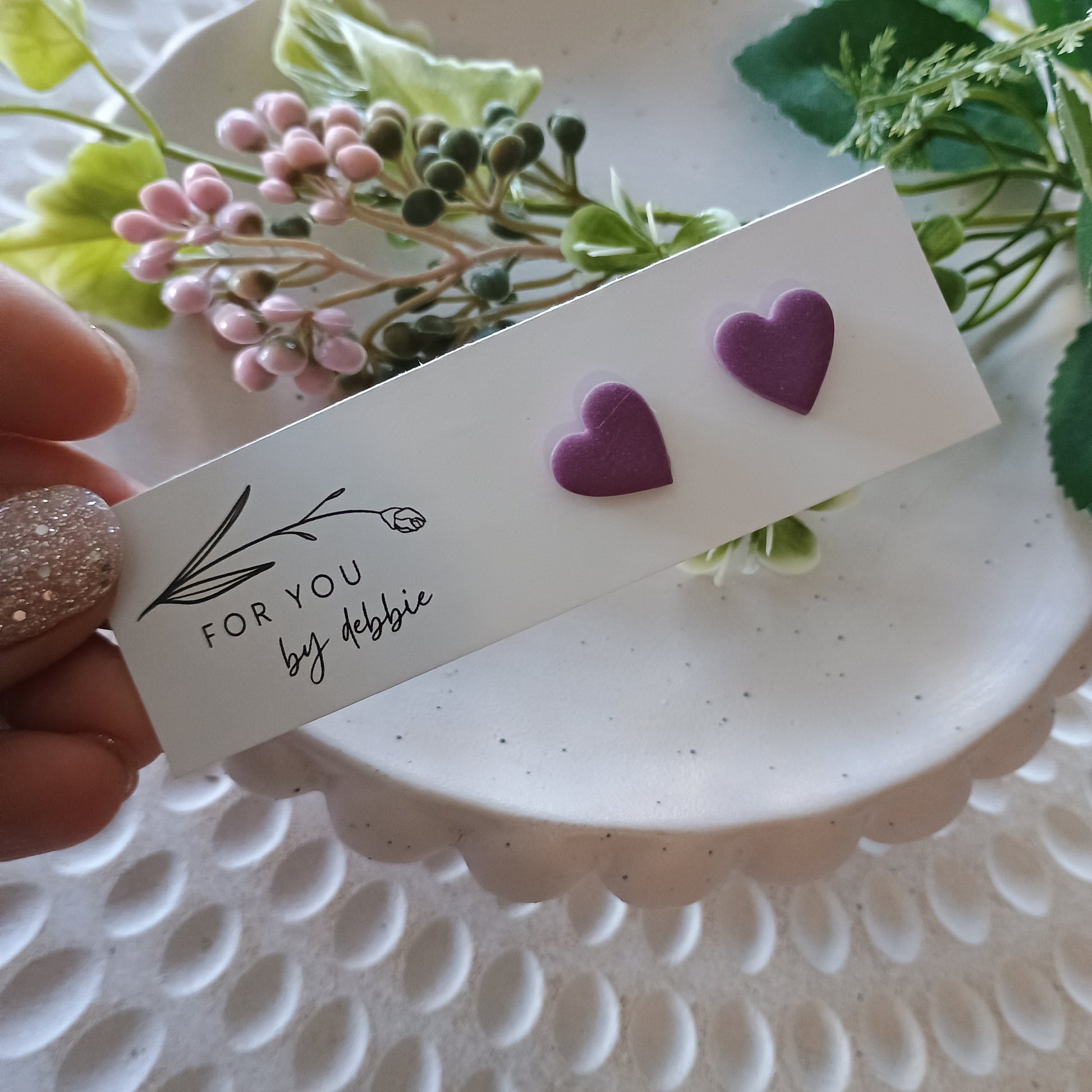 Heart studs - purple