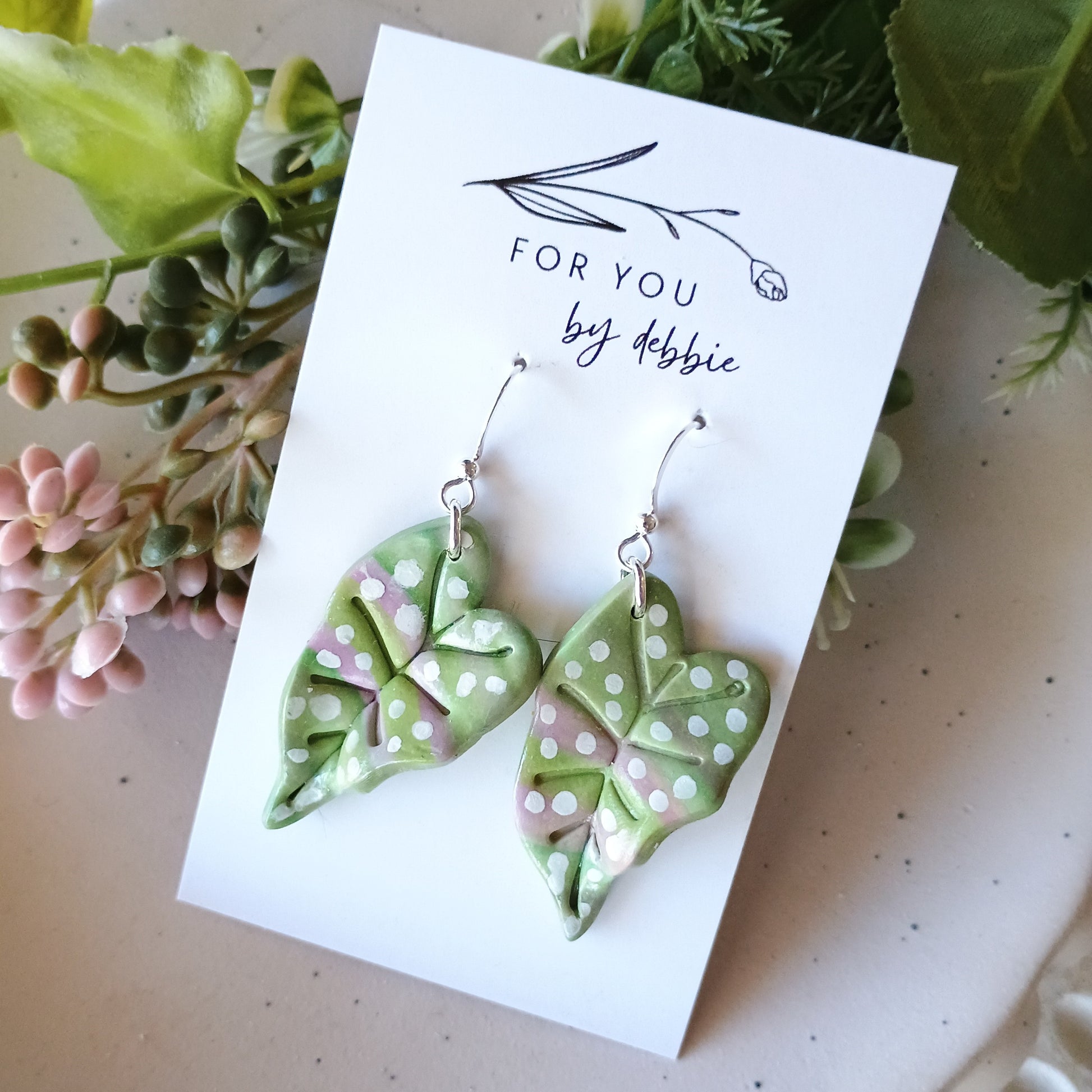 handcrafted using polymer clay, hand painted spots and gloss glaze. Unique and interesting organic shaped leaves.